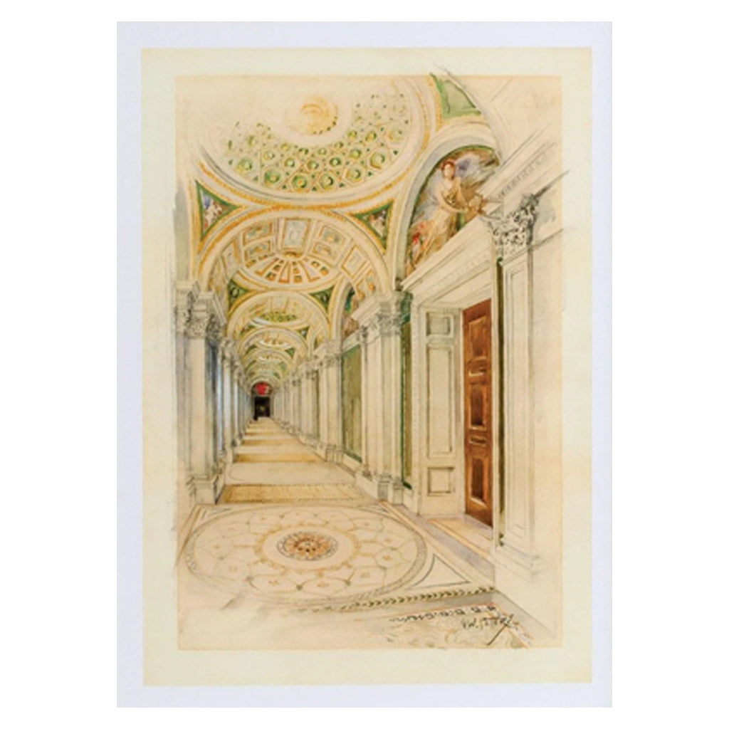 Distinguish your decor with G.W. Peters’ 1897 watercolor over graphite painting of a hallway in the Thomas Jefferson building. The original watercolor over graphite drawing is in the collections of our Prints and Photographs collection. 11" x 14". Matted and printed on archival paper.